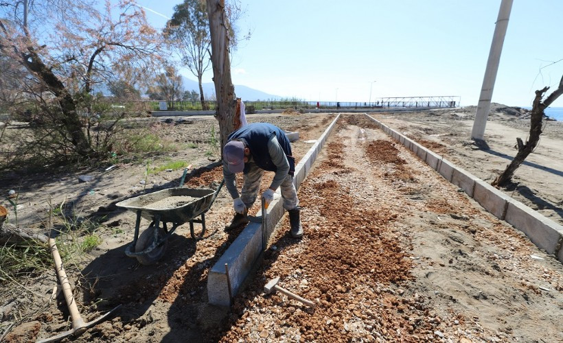 Menderes sahilinde yürüyüş yolu yenileniyor